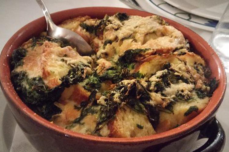 Dopo aver mescolato in una terrina scaglie di toma con parmigiano grattugiato, alternare nella teglia strati di pane, di ajucche e di formaggio fino ad esaurimento degli ingredienti.